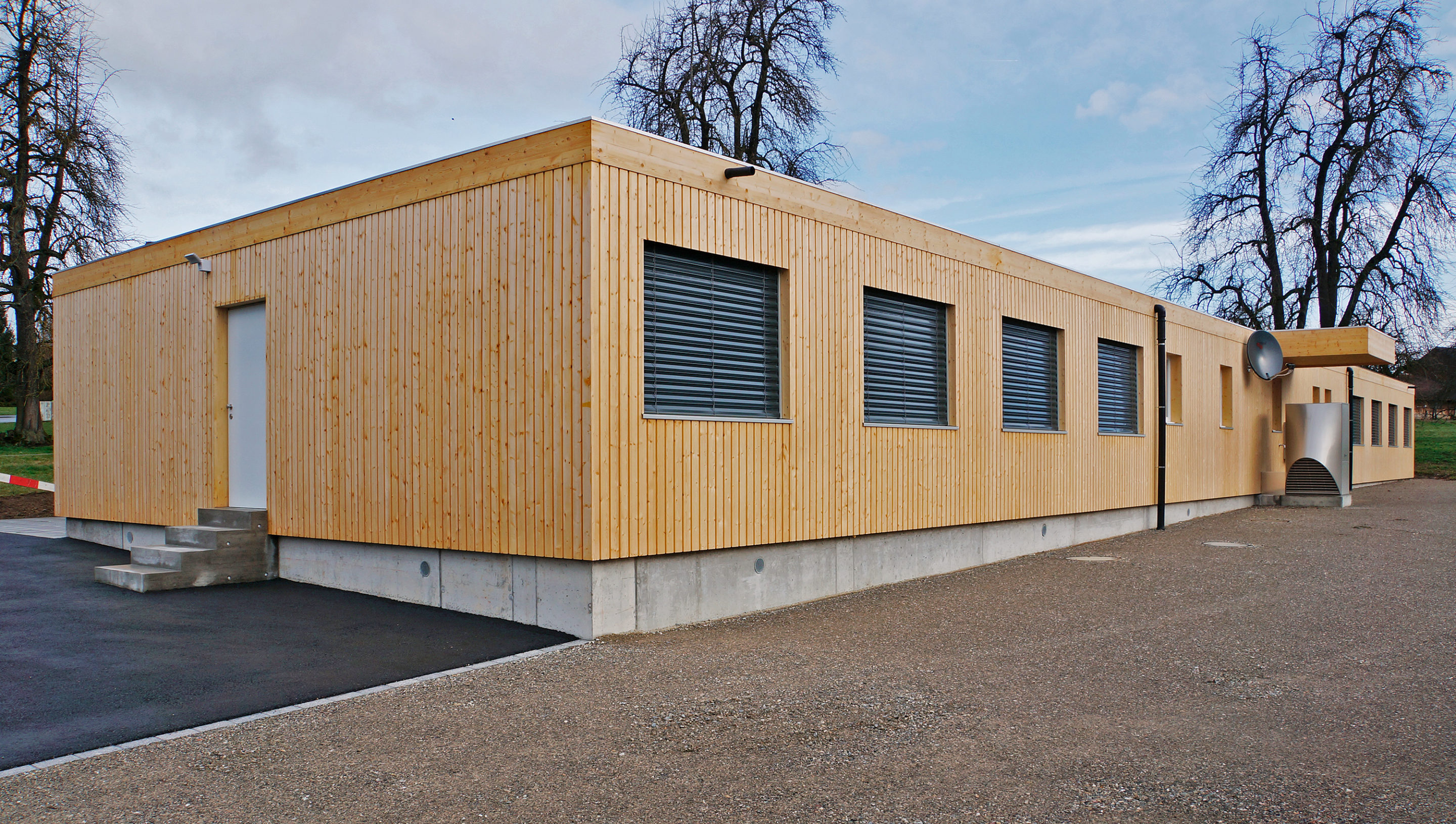 Abbruch bestehendes Postgebäude und Neubau Asylunterkunft als Elementbau aus Holz. Unterkunft für insgesamt 32 Personen.