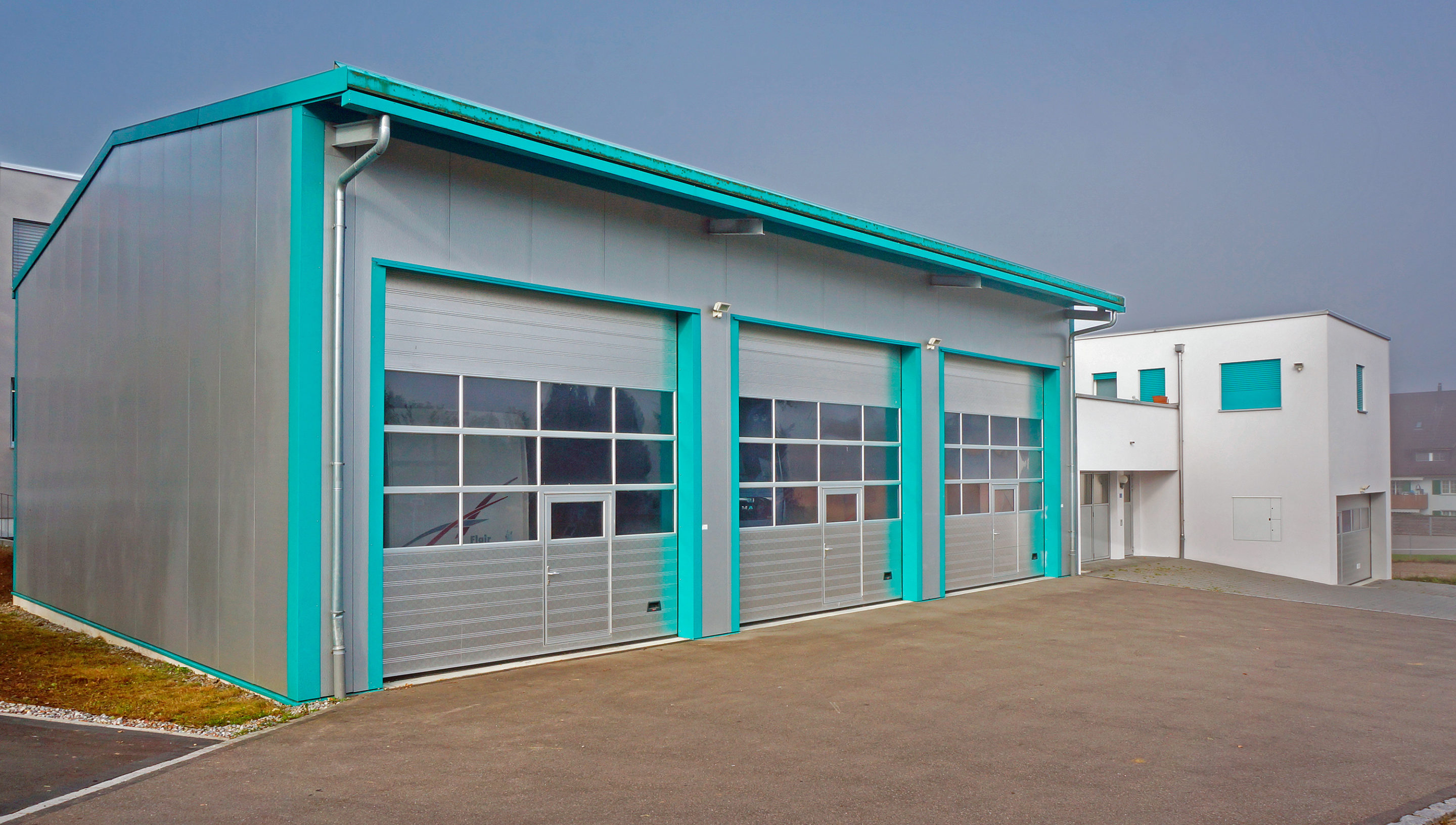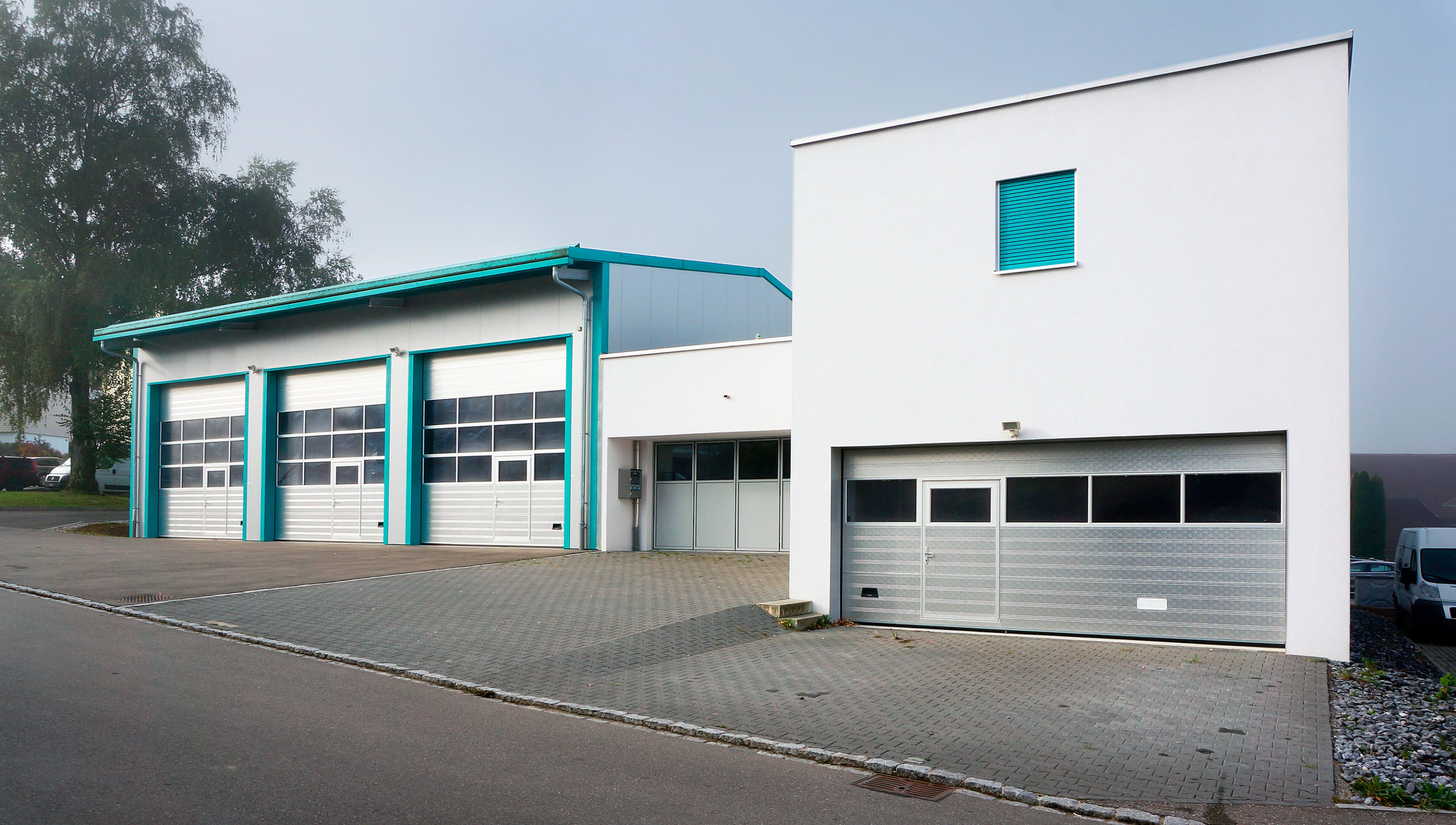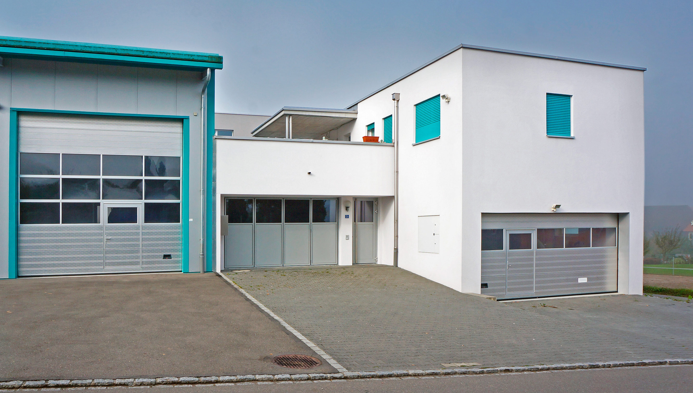Büro- und Gewerbebau mit Lagerhalle und Wohnung.