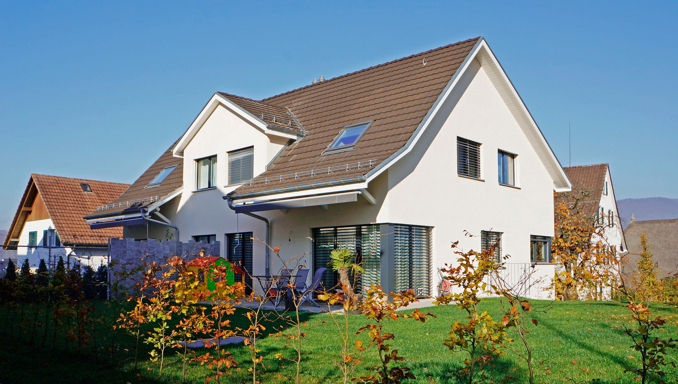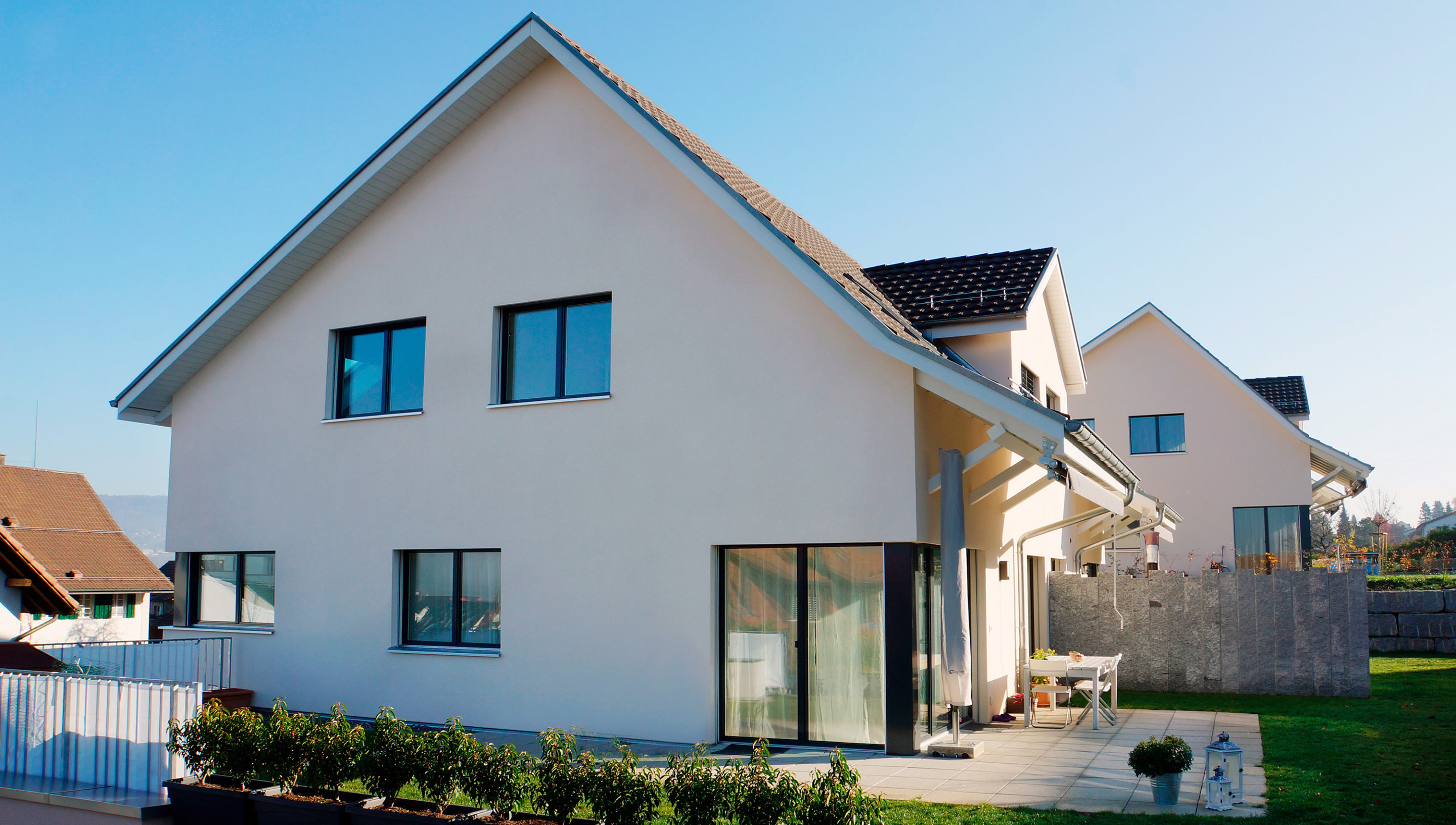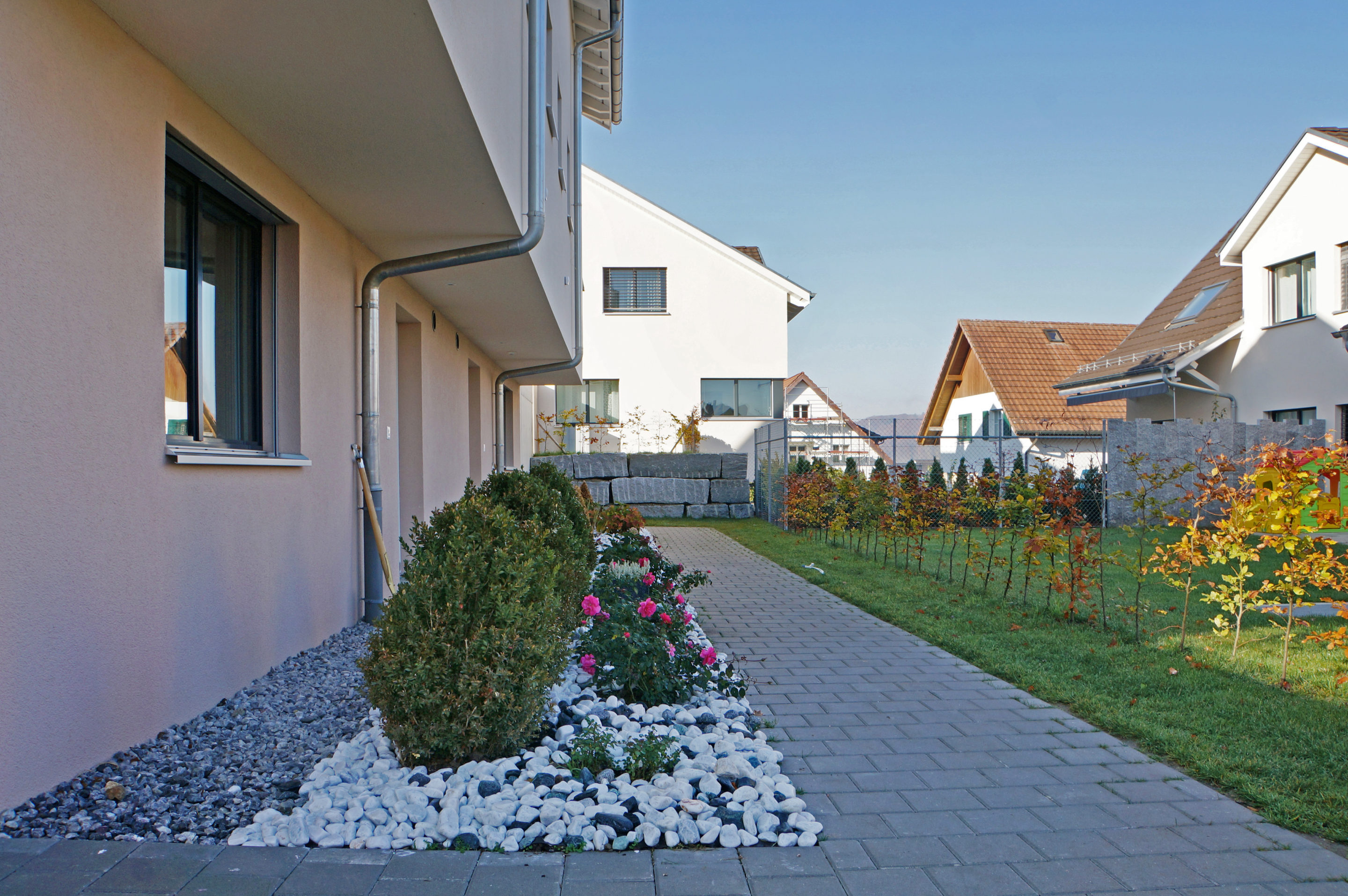 Wohnüberbauung mit drei Doppeleinfamilienhäuser.