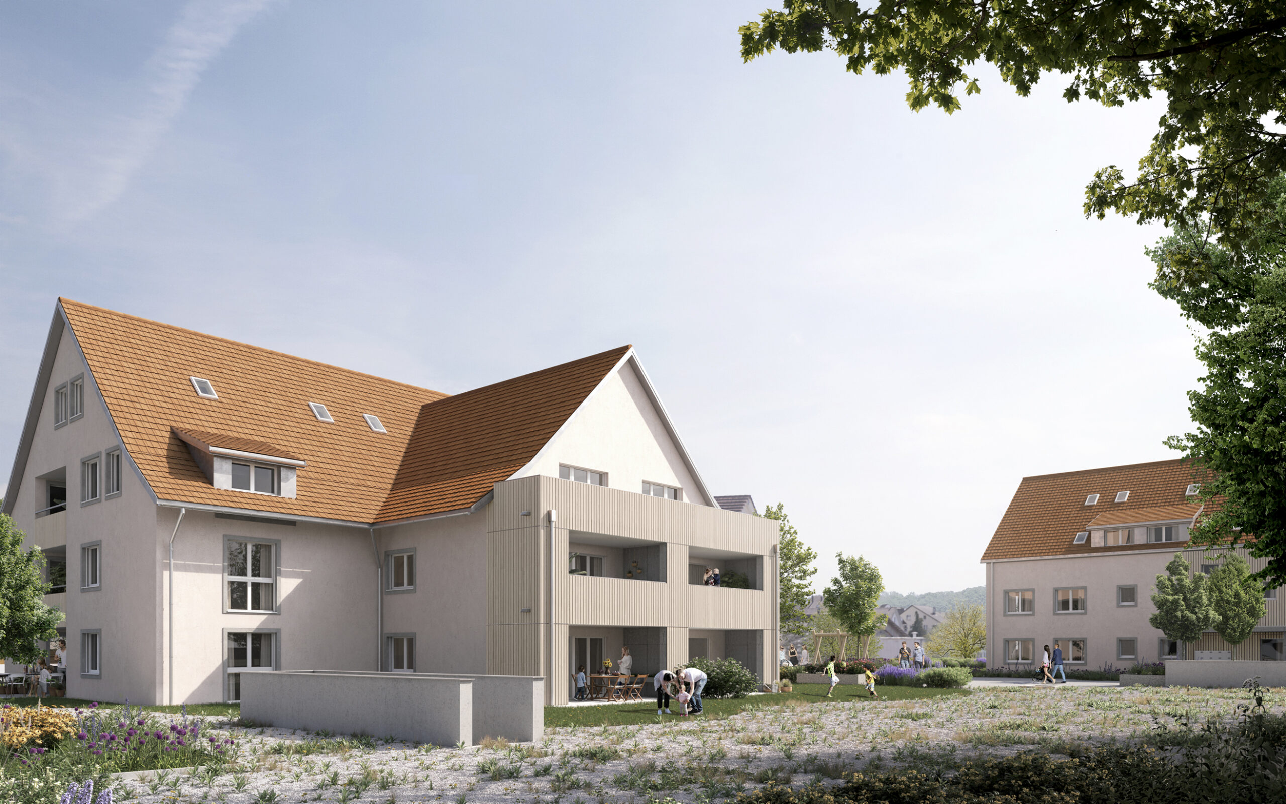 Wohnüberbauung in der Kernzone von Watt mit insgesamt drei Mehrfamilienhäuser, davon eines als Ersatzbau des ursprünglichen Bauernhauses. Das Projekt bietet 28 Mietwohnungen mit einem ausgewogenen Wohnungsmix, grosszügigen Grundrissen und viel Erholungsraum.